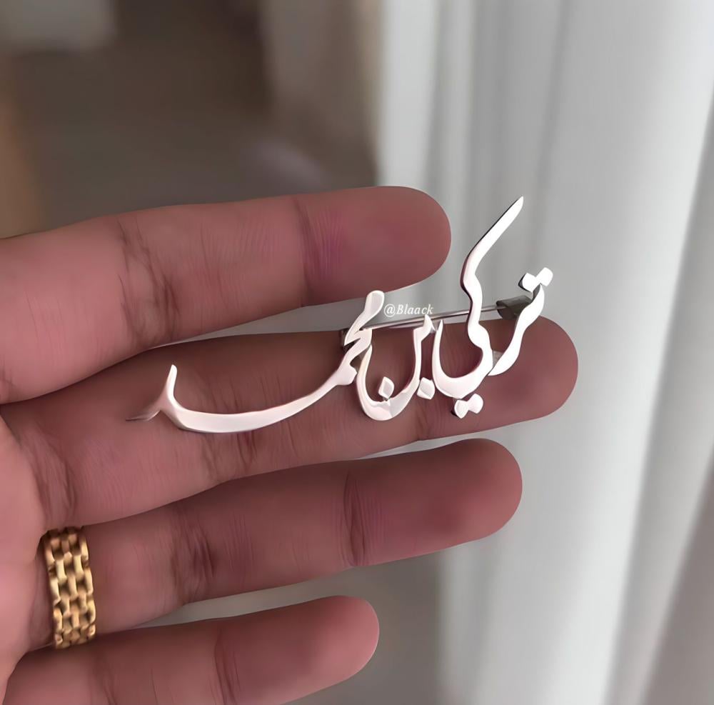 3- حجم البروش ٤سم وقد يزيد او ينقص سانتي حسب حروف الاسم ونوع الخط