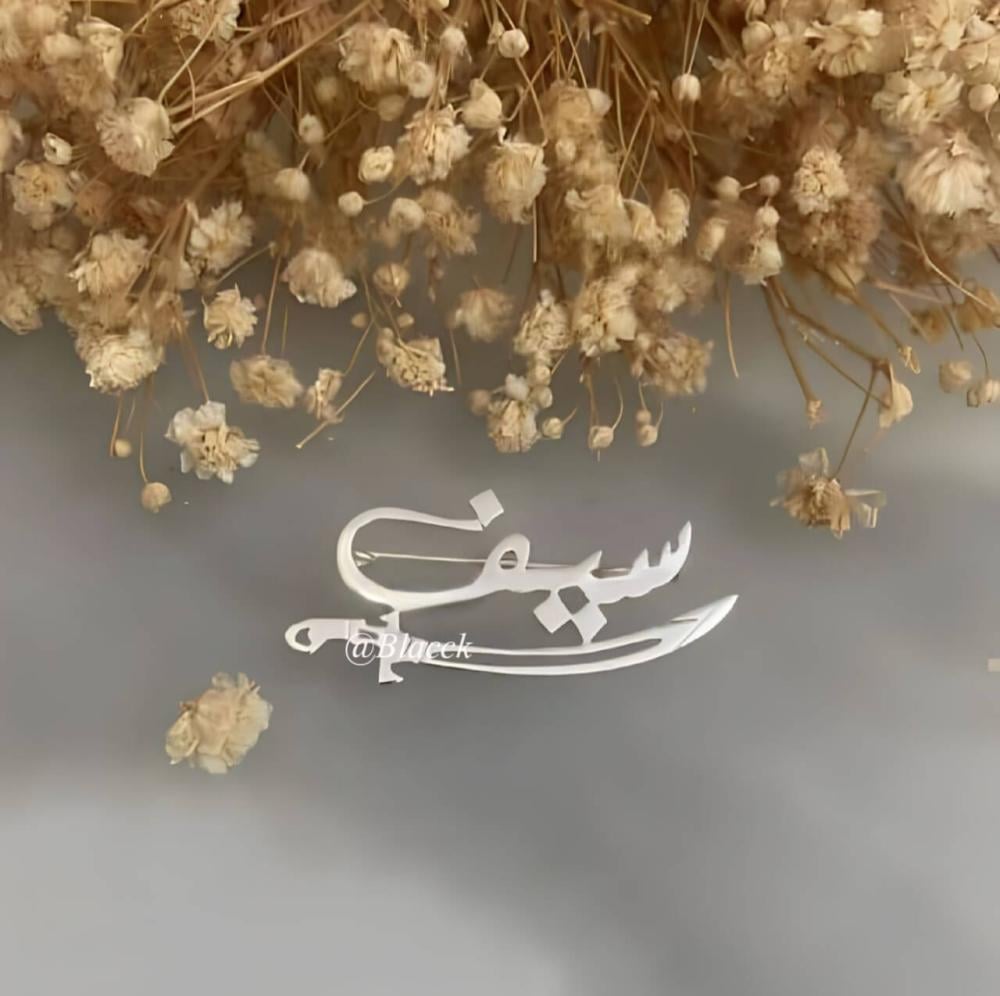 3- حجم البروش ٤سم وقد يزيد او ينقص سانتي حسب حروف الاسم ونوع الخط