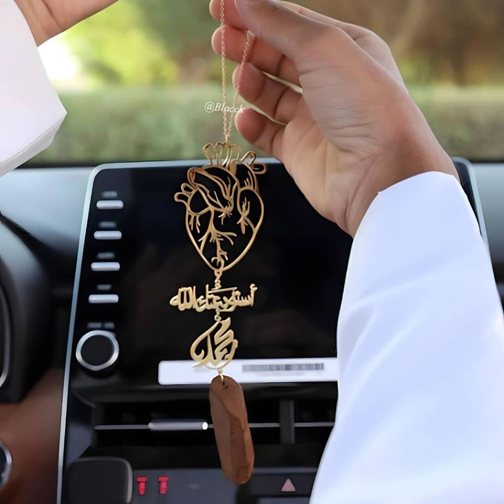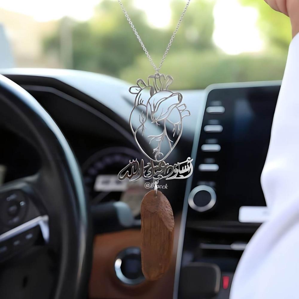 • تعليقة سيارة فاخرة بالاسم مصممة حسب اختيارك مع لمسة جميلة من كسرة العود، لتضفي لمسة أنيقة وفخمة بارائحتها الجميله على سيارتك.