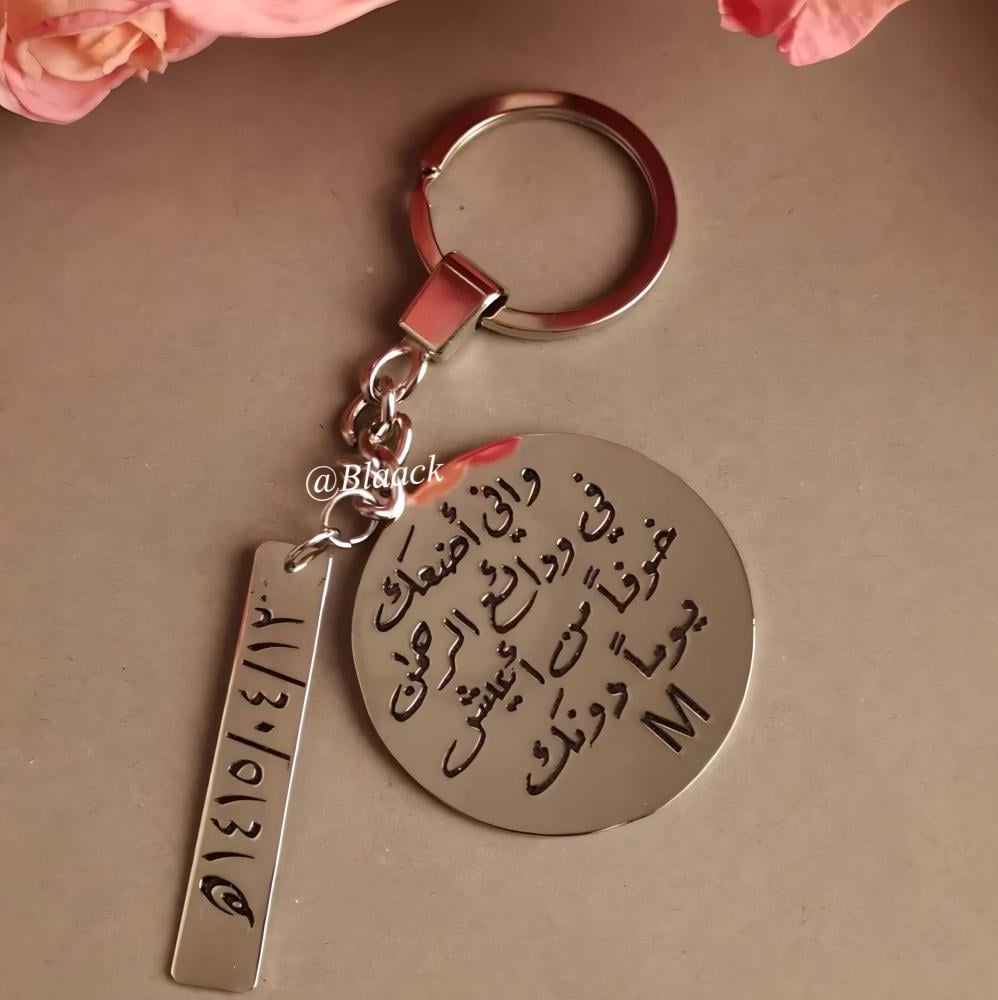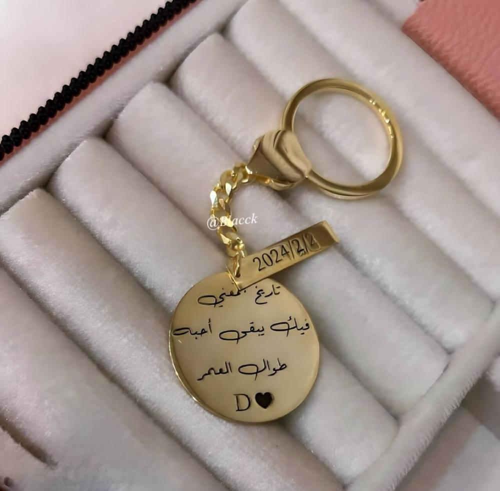 بتصميم مبتكر لميدالية مفاتيح مخصصة بالاسم ، مثالية يمكنك تقديمها كا هدية شخصية أو تذكارية وتبرز فيها الأناقة والأصالة.